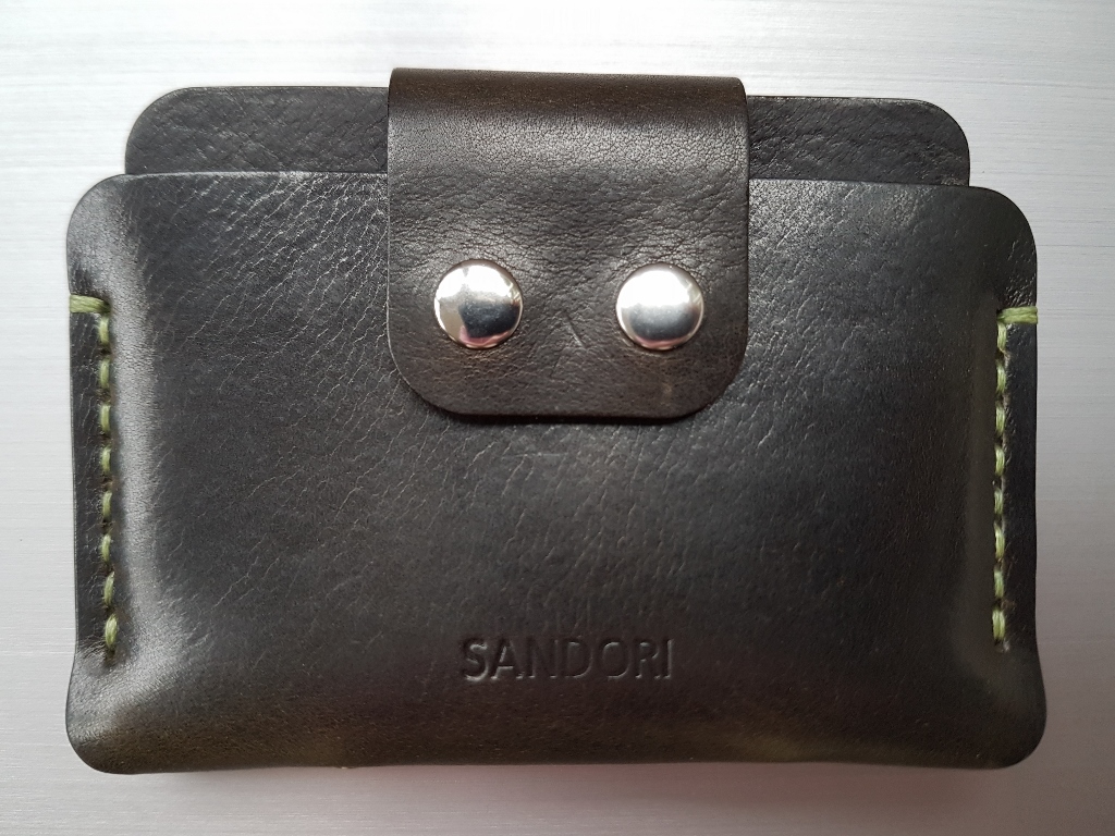 Ein qualitativ sehr hochwertiges unisex Mini Portemonnaie in der Farbe Dunkelolive aus echtem, glattem italienischem Leder mit einer Kontrastnaht in olive.