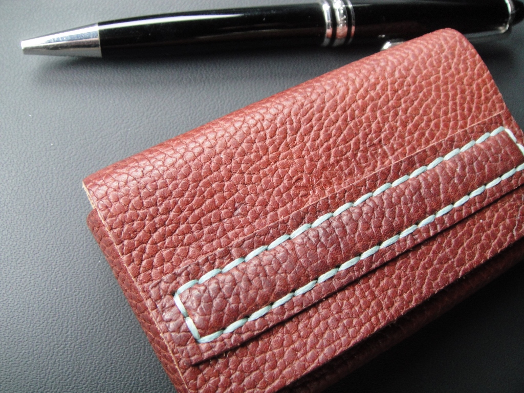 Die präzise ausgeführte Naht sorgt nicht nur für die Langlebigkeit des Visitenkartenetuis, sondern ist in der Kontrastfarbe zugleich ein Differenzierungsmerkmal.